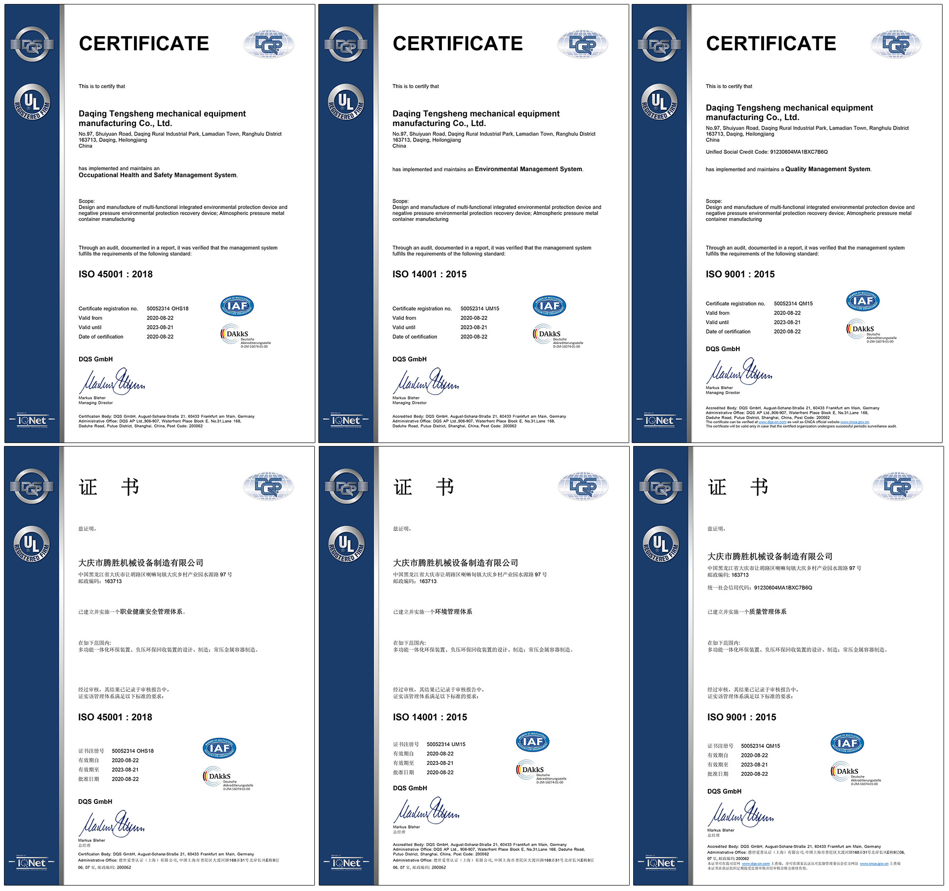 公司一直秉承現代化企業先進的管理模式,先后獲得了GB/T 19001-2016/ISO 9001:2015質量管理體系認證、ISO 45001:2018職業健康管理體系認證、GB/T 24001-2016/ISO 14001:2015環境管理體系認證、環境評價。